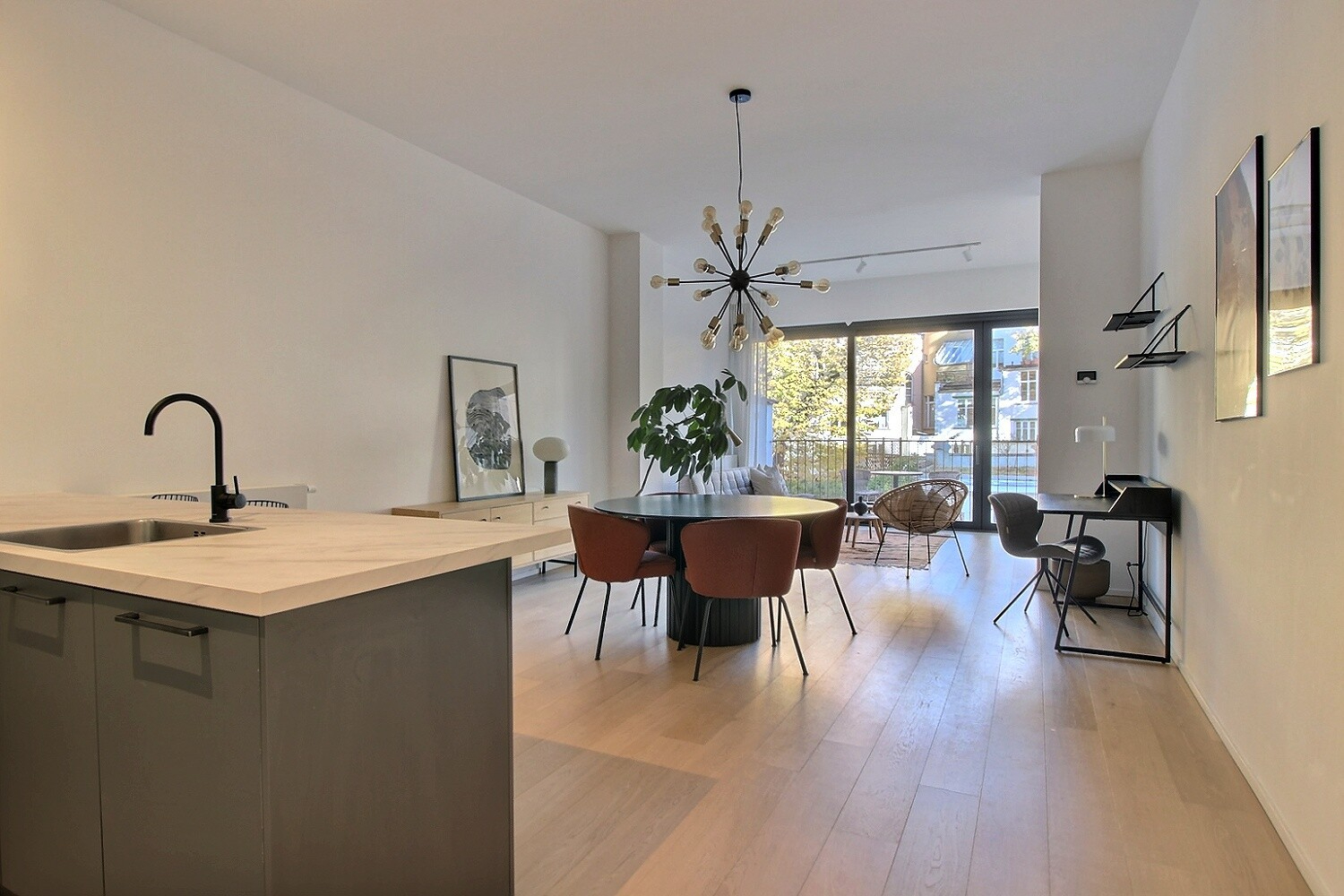 Situé dans le quartier Royal, à proximité du Cirque Royal, du centre-ville et du quartier Européen, ce superbe appartement meublé de 101 m² (selon PEB) offre un cadre de vie exceptionnel. Au 2e étage d'un élégant immeuble, vous découvrirez un hall d'entrée avec toilette séparé et placards, un vaste séjour d'environ 38 m² donnant accès à une terrasse arrière et une cuisine américaine entièrement équipée. L'espace nuit se compose de 2 chambres : la première de ±16 m² avec une salle de douches attenante, et la seconde de ±11 m², une 2e salle de bains complète ce bien.