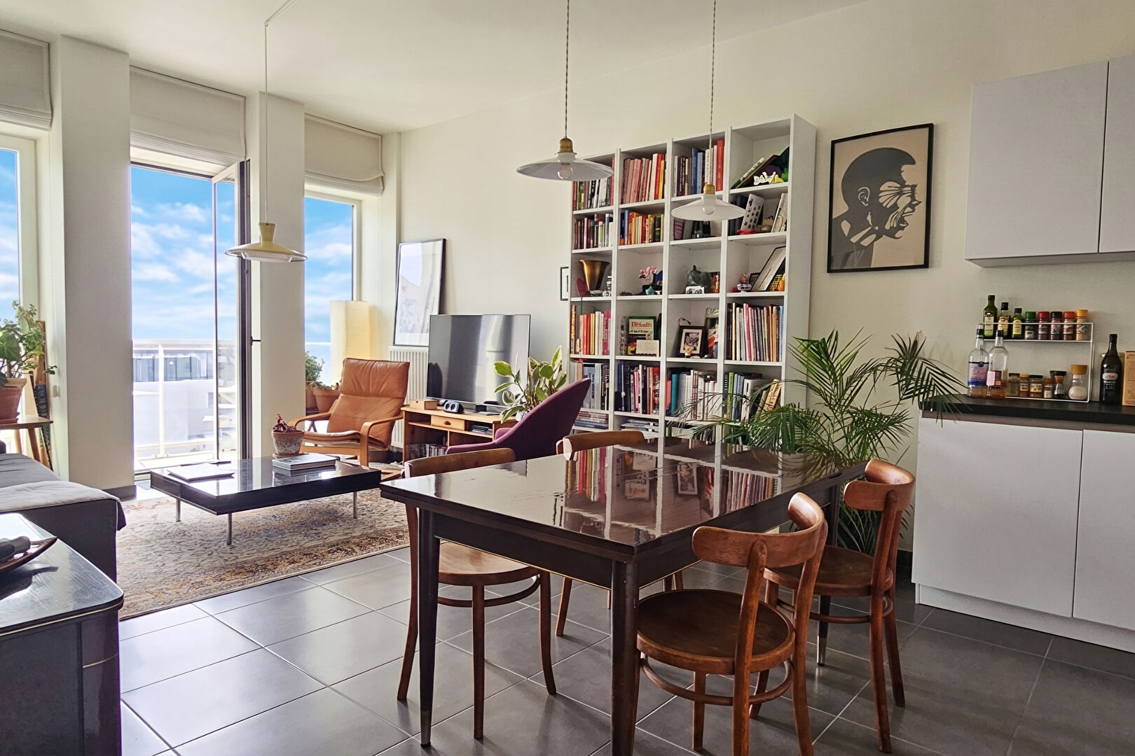 Idéalement situé à deux pas de la Place Sainte-Catherine et du quartier Dansaert, situé au 6ème étage d'un immeuble moderne, bel appartement de 55 m² (selon PEB) agrémenté d'une grande terrasse offrant une vue imprenable sur Bruxelles. Un hall d'entrée avec vestiaire et toilette séparée conduit vers un vaste séjour lumineux comprenant un salon, un espace salle à manger et une cuisine ouverte équipée , une chambre avec salle de douche attenante. Ce bien soigné bénéficie d'une excellente acoustique, d'un système VMC et d'une localisation privilégiée. L'immeuble est équipé d'un ascenseur, d'un local poubelle et un local vélo sécurisé est à votre disposition. PEB : B Provisions pour les charges : 150 euros pour l'eau, le chauffage et l'entretien des communs et ascenseurs